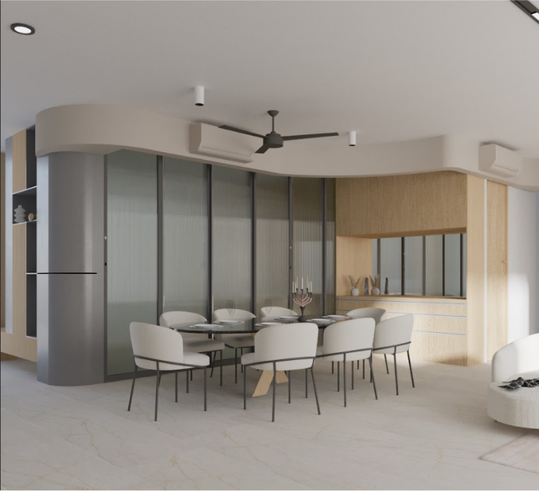 Step into a home where timeless elegance meets modern simplicity. Designed with a soothing palette of soft neutral colors, this interior creates a calm and inviting ambiance that feels effortlessly luxurious. The minimalist approach focuses on clean lines, uncluttered spaces, and functional design, ensuring a seamless balance between aesthetics and practicality.